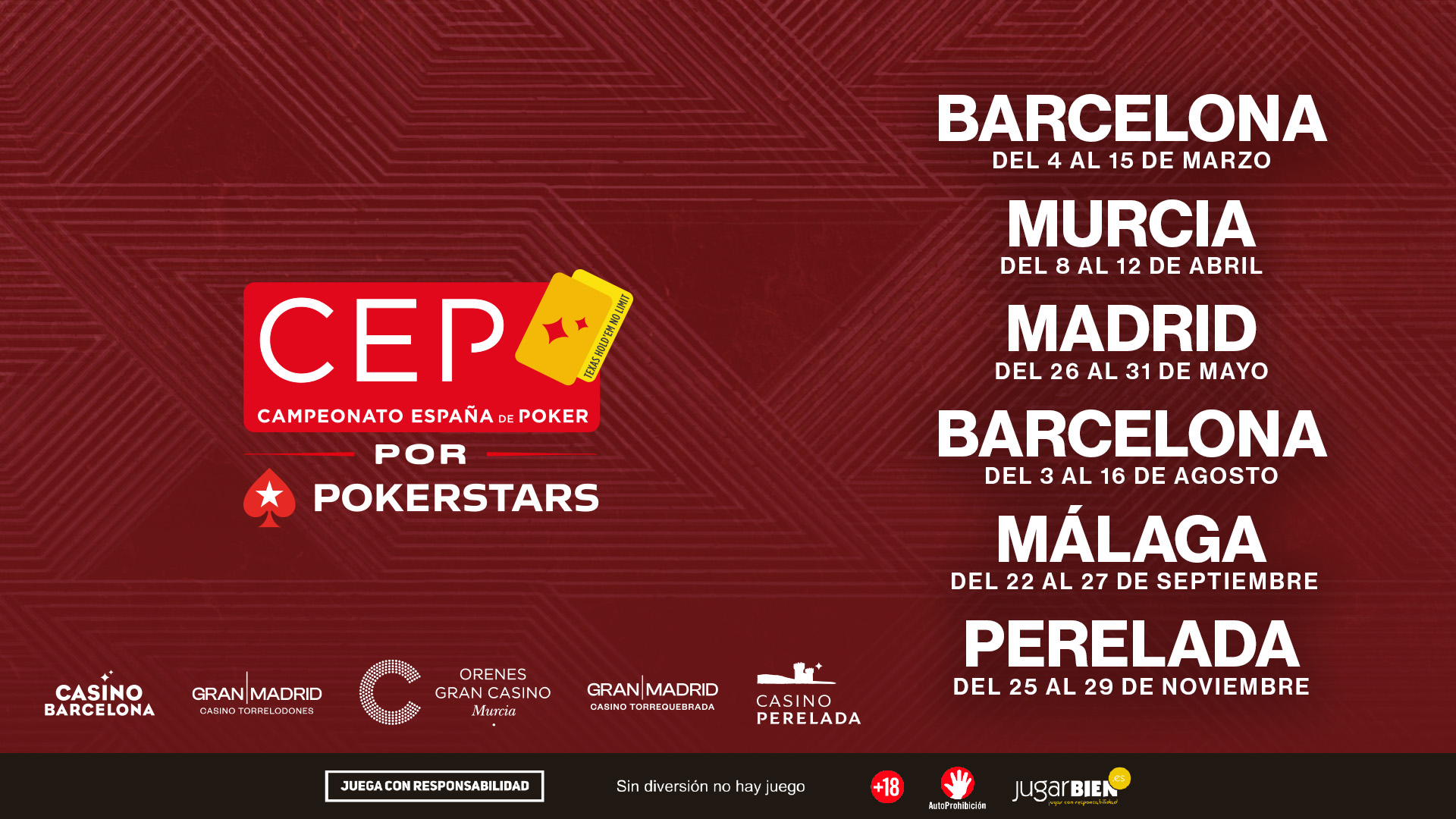 El Campeonato de España de Poker por PokerStars se prepara para celebrar una temporada conmemorativa por su 20 aniversario y ha hecho oficial las fechas de la de la próxima temporada 2026. Como es habitual, el CEP Barcelona, que se celebrará del 4 al 15 de marzo en Casio Barcelona, dará el pistoletazo de salida a la XIX edición del circuito decano del poker español. Murcia, que vuelve al calendario tras su última cita en 2022, junto a Madrid, Málaga y Perelada, completan la programación de la temporada:
